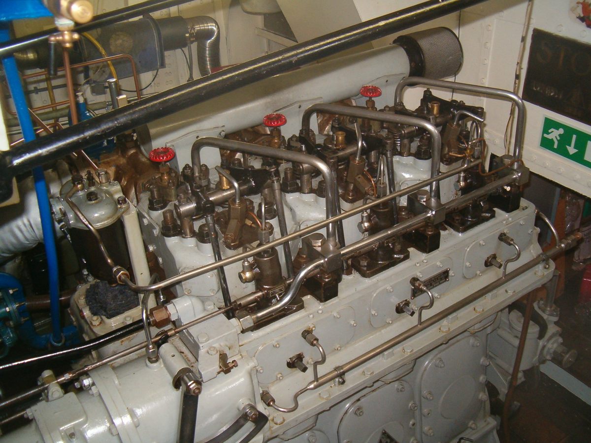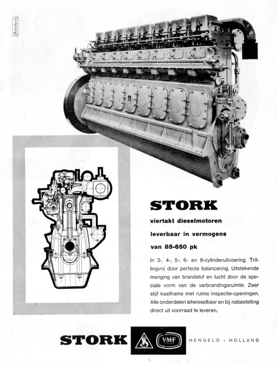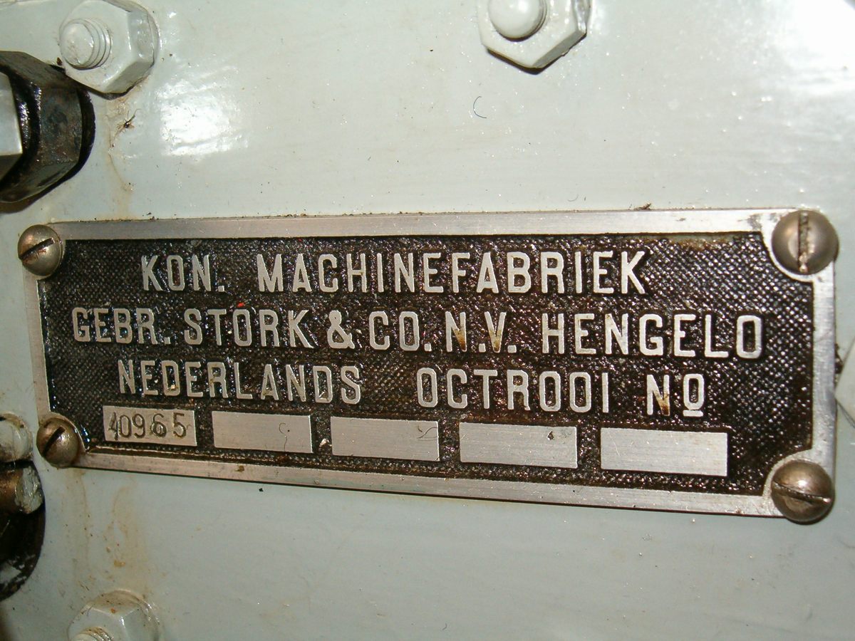 Een Stork-Ricardo van het type R153. 85 pk 1000 tpm. Gewicht ca. 1700 kg.