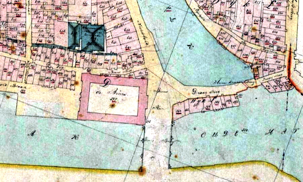 Rechts de Oude Haven met erboven de Kolk , gescheiden door de