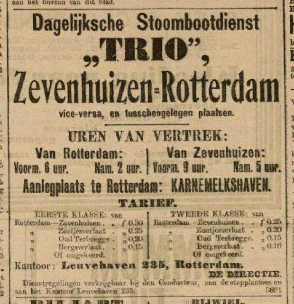 een Stoombootdienst van Rotterdam naar Zevenhuizen met