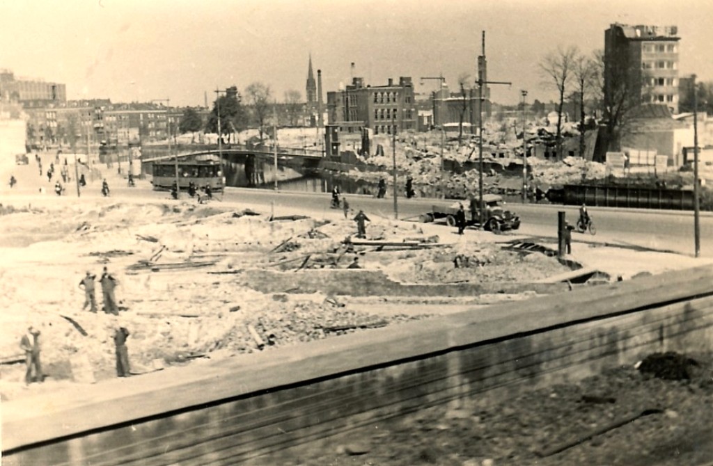 Na het bombardement wordt de Kolk gedempt met het puin dat volop